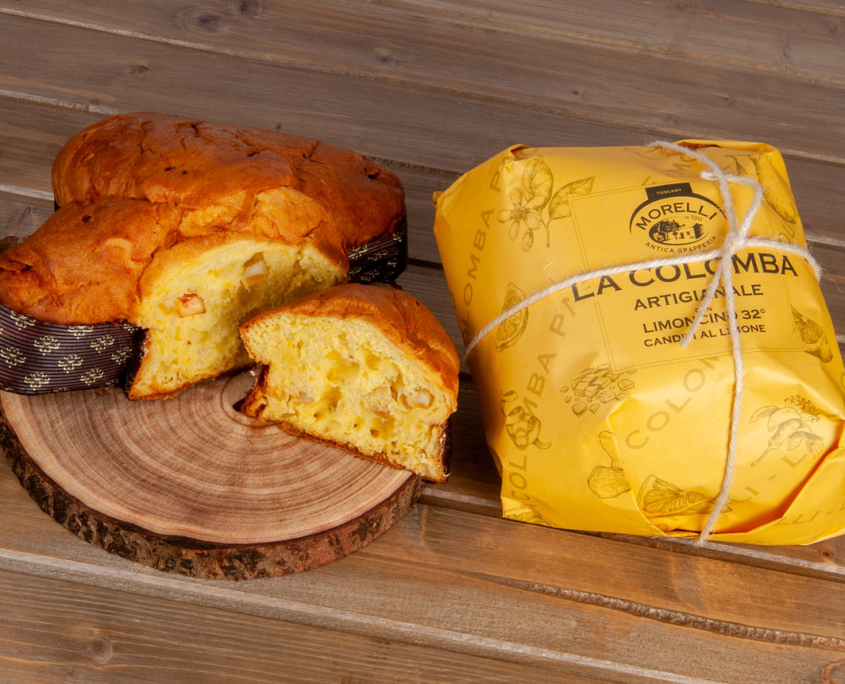 La Colomba artigianale alla grappa sorprende al primo morso, dischiudendo un orizzonte di profumi e sapori amalgamati seguendo una tradizione ultra secolare. Per prepararla usiamo soltanto lievito madre e ci avvaliamo del metodo a doppia goccia di impasto. Lasciamo quindi che la nostra grappa vada a conoscerla, imbevendola, quindi utilizziamo il cioccolato fondente per il ripieno. Noi del Liquorificio Morelli sappiamo bene quanto un tocco umano e le tradizioni possano essere importanti: del resto, è una filosofia che portiamo avanti da oltre cento anni. La Colomba viene incartata rigorosamente a mano, per aggiungere un ulteriore elemento artigianale al dolce, perennemente candidato al ruolo di attore protagonista delle festività pasquali.